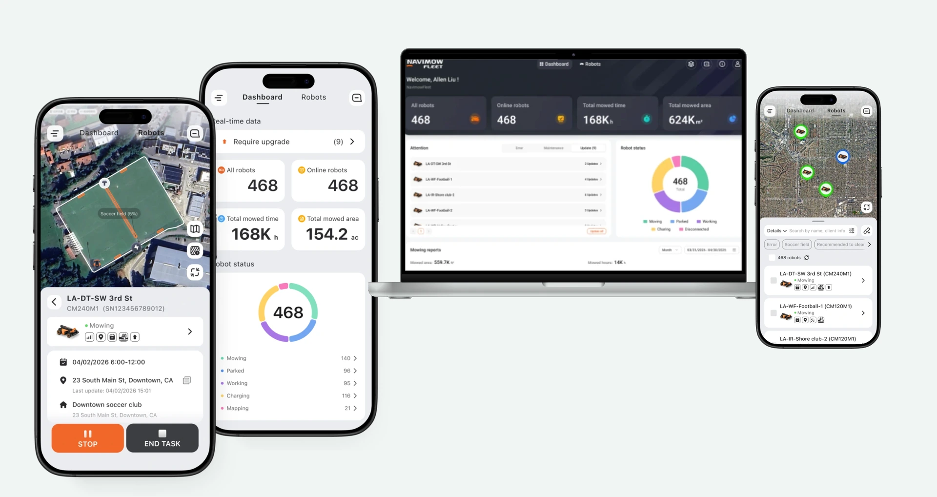 Voor grootschalige toepassingen ondersteunt de Navimow Terranox vlootbeheer. Eén operator kan honderden maaiers tegelijk monitoren, taken toewijzen en kaarten beheren. Dit verhoogt de efficiëntie en maakt grootschalig commercieel onderhoud beheersbaar.